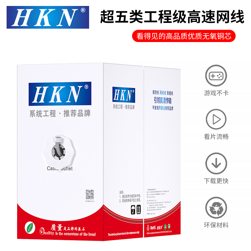 • HKN 超五類室內雙屏蔽網線 HKN-155PP